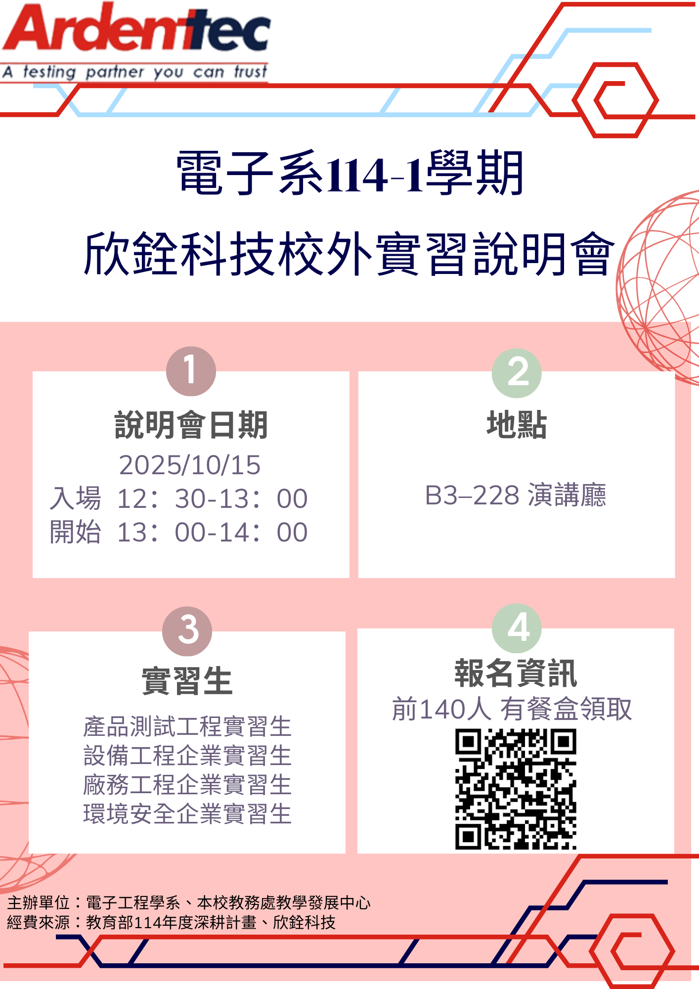 【實習】欣銓科技(114-2學期)校外實習說明會(10/15舉行)