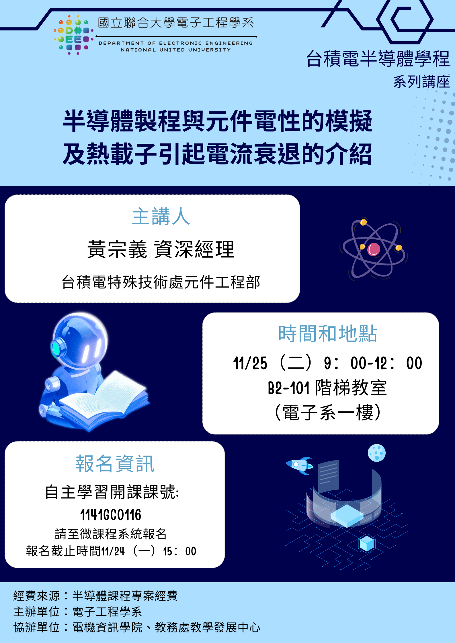 【講座】114-1學期台積電半導體學程系列講座 11/25(二) 9:00-12:00
