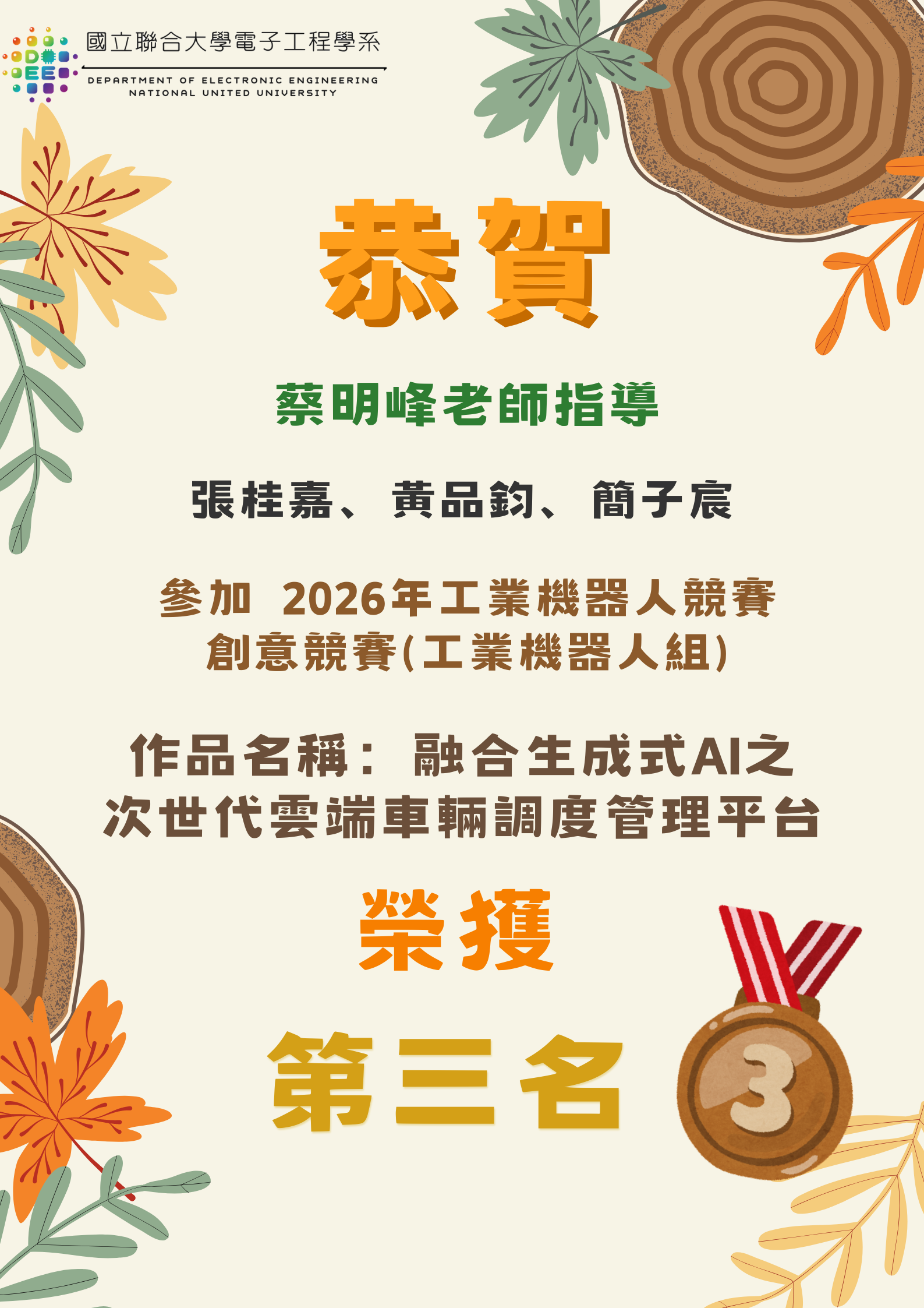 【獲獎】蔡明峰老師指導學生參賽獲獎(2026/3/14)